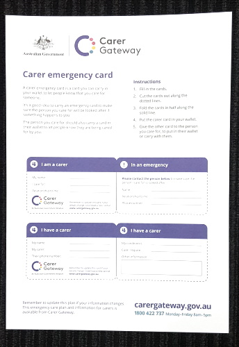 Carer Gateway Emergency Care Kit - Emergency Card (A4)