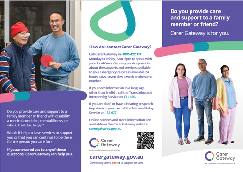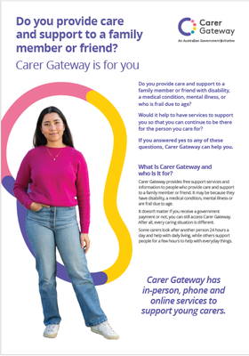 Carer Gateway is an Australian Government initiative to help carers. Publications are provided free-of-charge to assist organisations and individuals to promote carer services.